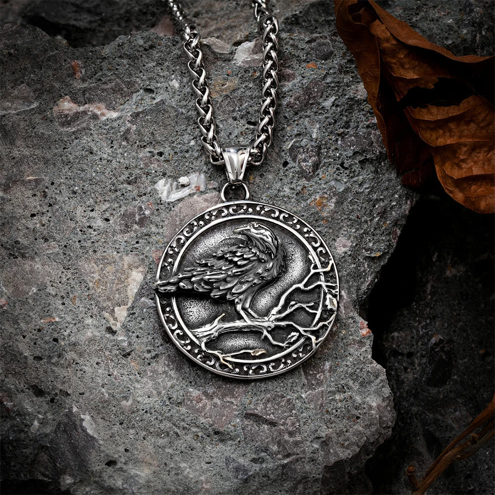 WorldNorse Vintage Embossed Raven Odin Necklace