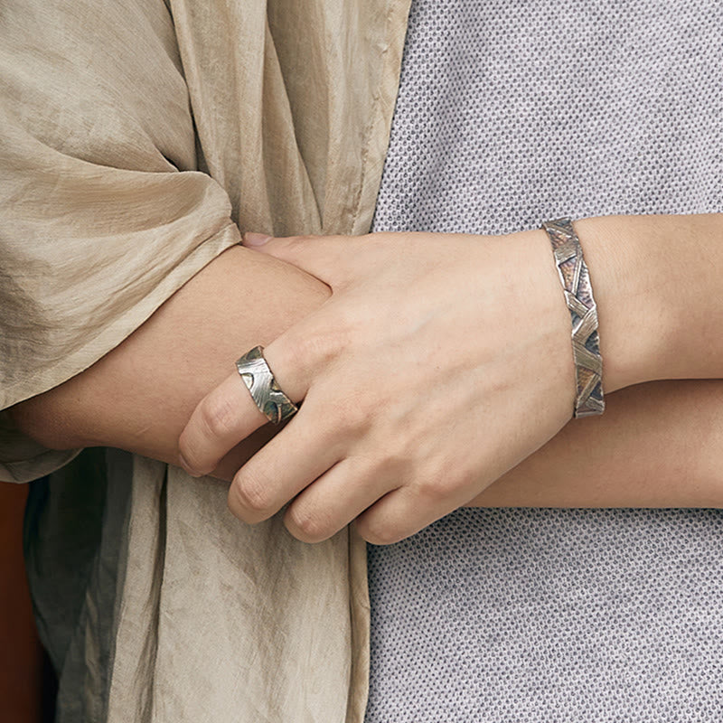 WorldNorse Handcrafted 999 Silver Prismatic Fracture Texture Ring