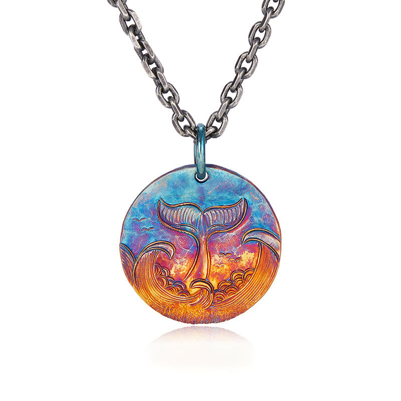 WorldNorse 999 Sterling Silver Hued Whale Tail Wave Necklace