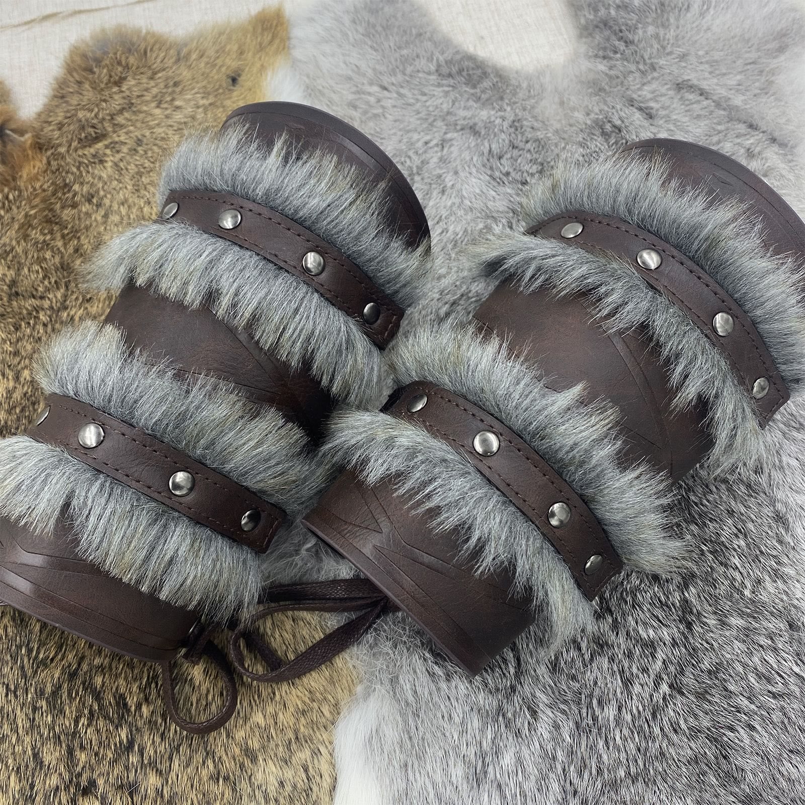WorldNorse Medieval Knight Double Layer Raw Edge Arm Bracers - Brown - image 5