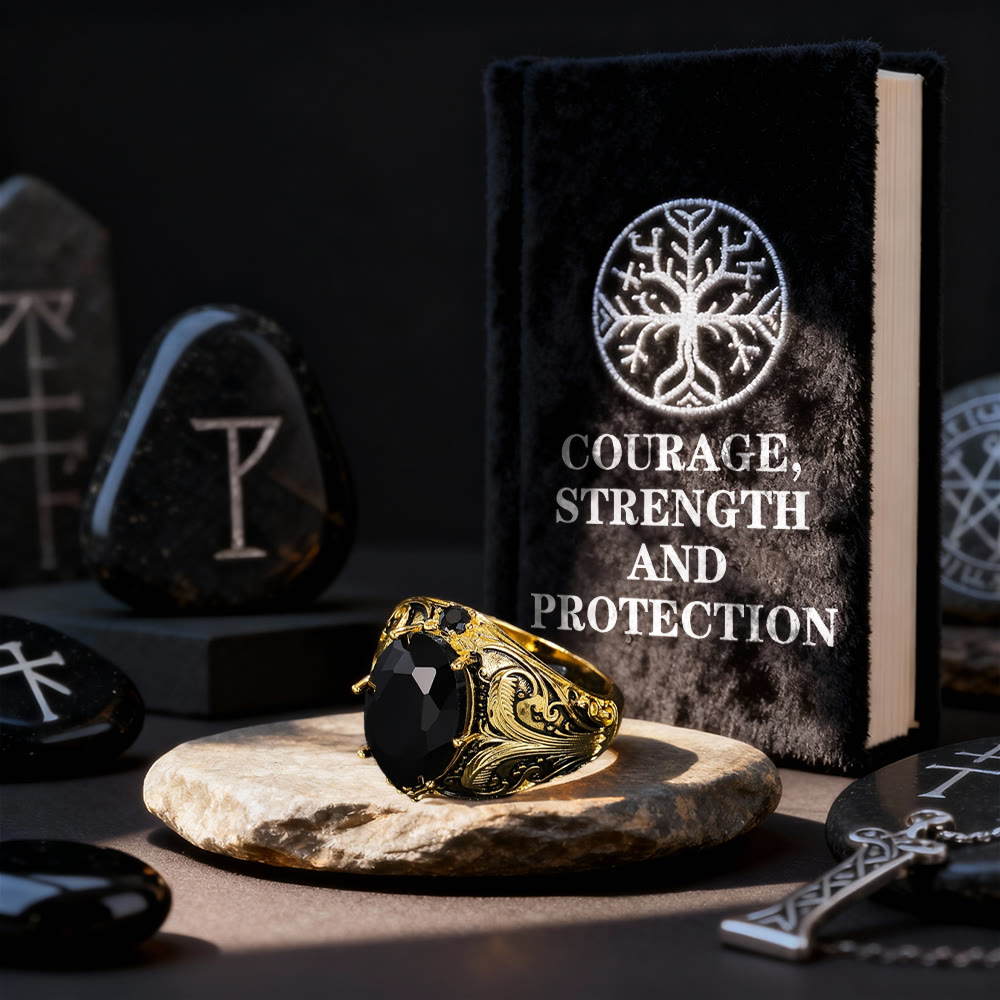 The Vintage Protection Black Onyx Ring is more than a statement — it's a shield of the spirit. Rooted in Viking heritage, its bold black onyx center is known as a stone of grounding, strength, and protection against negativity.