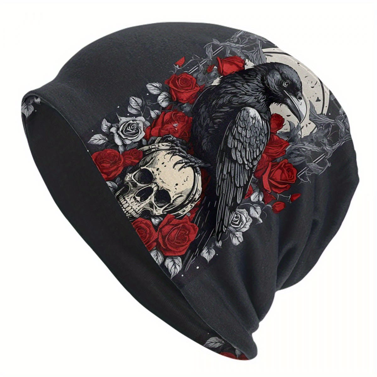WorldNorse Dark Raven Blood Skull Gothic Pattern Beanie - Raven and Skull#A - image 0