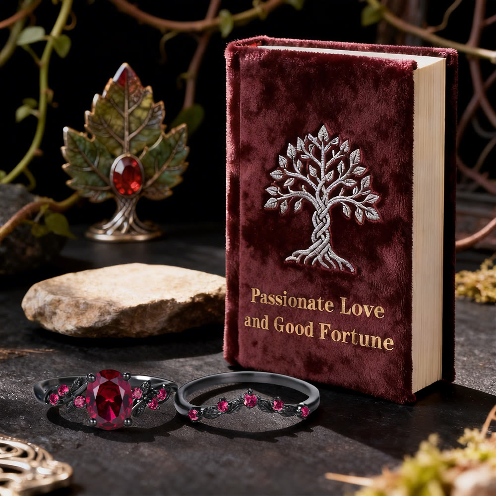 - Surprise the special woman in your life with a gift that truly reflects her powerful and unique spirit. This Dark Romance Ruby Black Leaf Ring Set is a thoughtful and meaningful choice for a birthday, anniversary, or special milestone, perfect for anyone with a passion for viking culture, alternative fashion, or botanical jewelry with a dark twist.