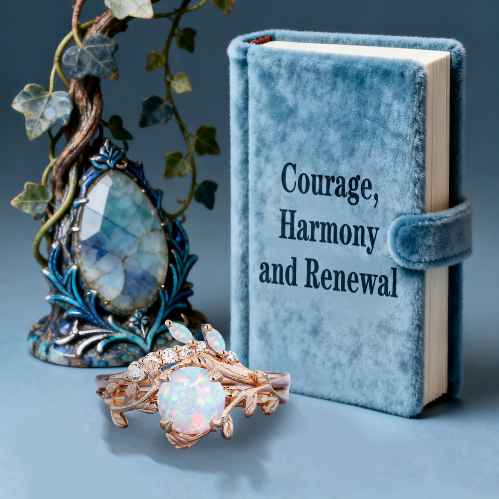 Forged in the spirit of the Vikings, the Yggdrasil Opal Branch Ring embodies the eternal connection between earth, sky, and the sacred Tree of Life. The glowing opal centerstone mirrors the shifting lights of the aurora, a symbol of divine guidance and mystic power. Delicately entwined golden branches and leaves recall Yggdrasil, the world tree that bound the Nine Realms together.