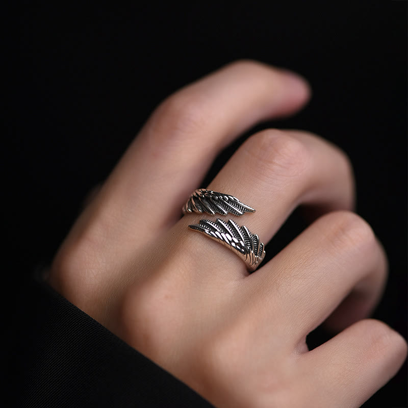 - Lean into the soaring, messenger-driven mystique of Norse legend with our Forged Raven Wing Weft Ring. A sharp blend of Viking divine-messenger symbolism and intricate craft, this piece speaks to those drawn to accessories steeped in otherworldly connection. Its detailed wing form echoes Huginn and Muninn—the ravens that flew across realms to bring Odin wisdom—while the layered feather texture mirrors the rough, wind-worn plumage of the birds that circled Viking longships and homesteads alike. This ring weaves the link between mortal and divine into daily wear, adding a layer of legendary purpose to any look.