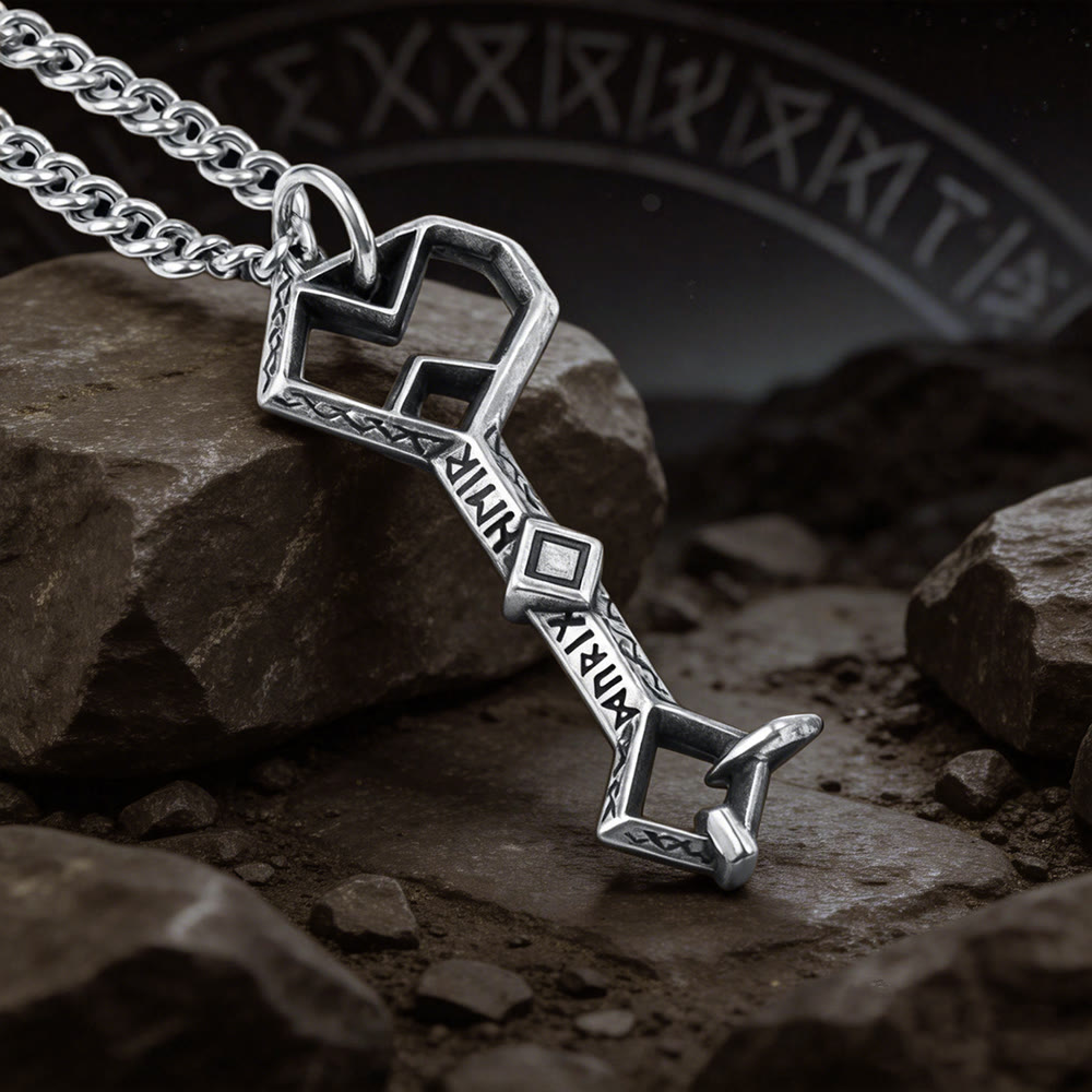 Embrace the spirit of the Northmen with our Viking Rune Key Pendant Talisman Necklace. In Norse tradition, keys were powerful symbols of authority, trust, and the safeguarding of hidden wealth or knowledge. This striking piece merges that ancient symbolism with the mystical power of Norse mythology, creating a wearable artifact that feels as though it was just unearthed from a sacred Viking temple.