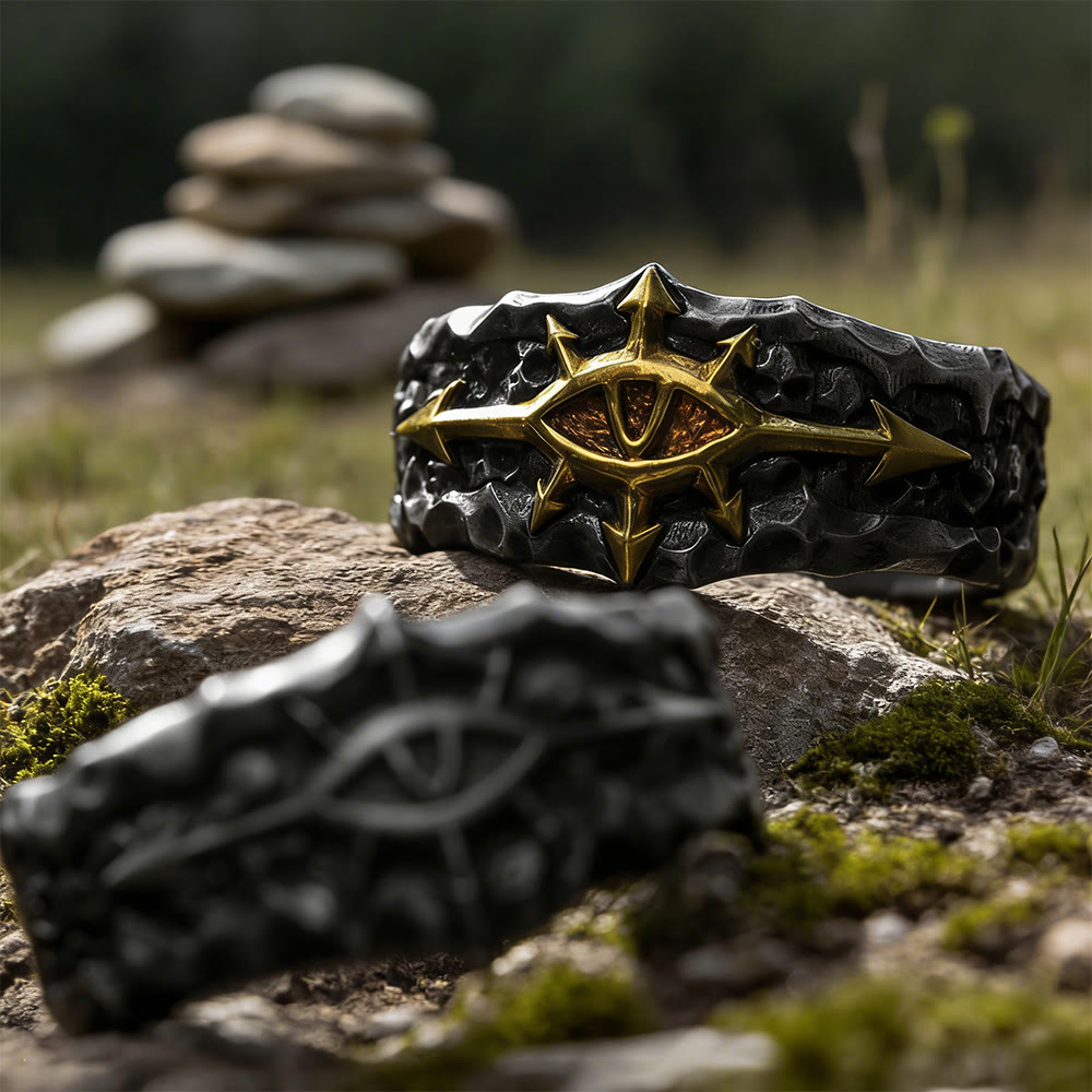 • This Forge Texture Riven Sigil Ring stands as a vivid tribute to Viking warrior armament. Meticulously shaped, the dark silver’s hammered texture bears the marks of intentional, battle-ready craft, while the gilded spear motifs anchor the design in the iconic weaponry that defined Norse military might. Every edge and detail speaks to the raw, purpose-driven spirit of Viking warriors—turning everyday wear into a nod to the bold, unyielding energy of ancient Norse raids. It’s a striking accessory that wraps the wearer in the mythic weight of Viking battle heritage.