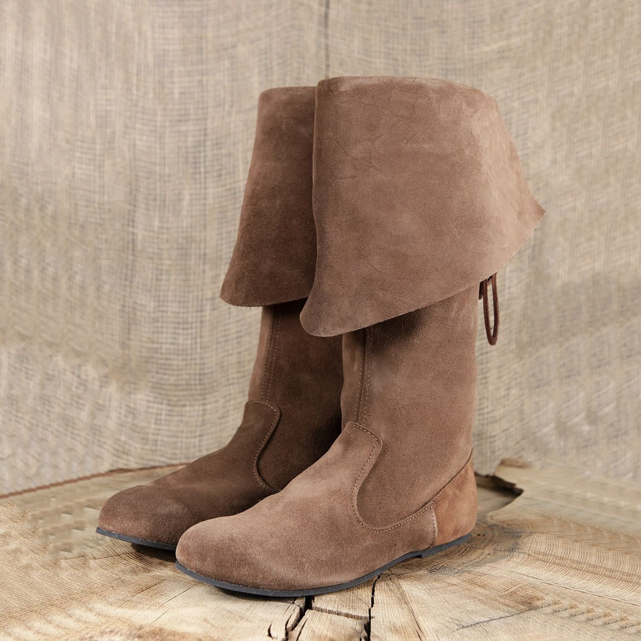 WorldNorse Suede Fold Over Drawstring Knee High Boots - Brown - US 13 - image 0