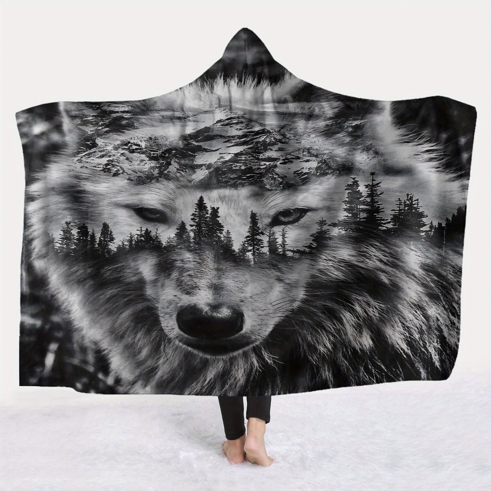 WorldNorse Mountainscape Pinewood Wolf Hooded Blanket - 150x200cm - image 1