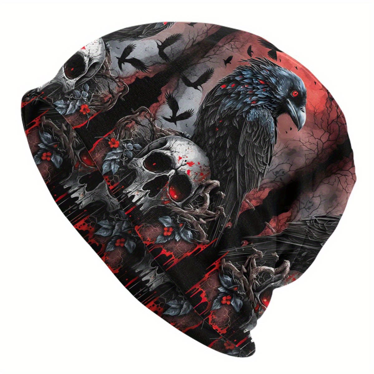 WorldNorse Dark Raven Blood Skull Gothic Pattern Beanie - Raven and Skull#A - image 0