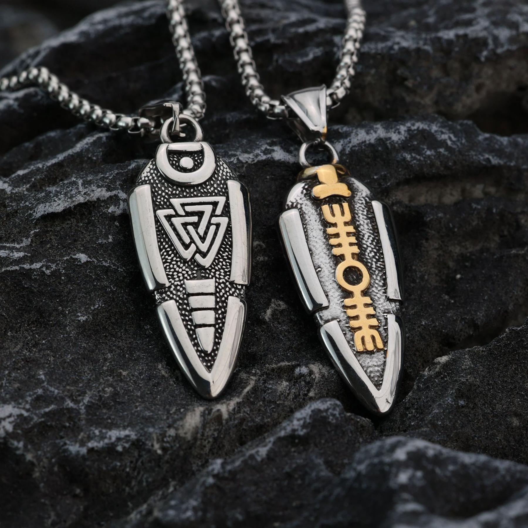 Discover this beautiful necklace in honour of the god of gods, the incredible Odin! Also wear a very strong and well-known symbol of Nordic mythology, the VALKNUT.