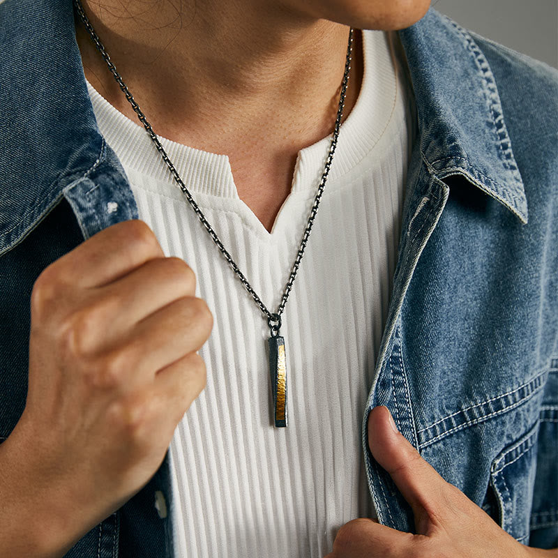 WorldNorse Handcrafted 999 Silver Textured Twisted Bar Necklace - With Chain - image 0