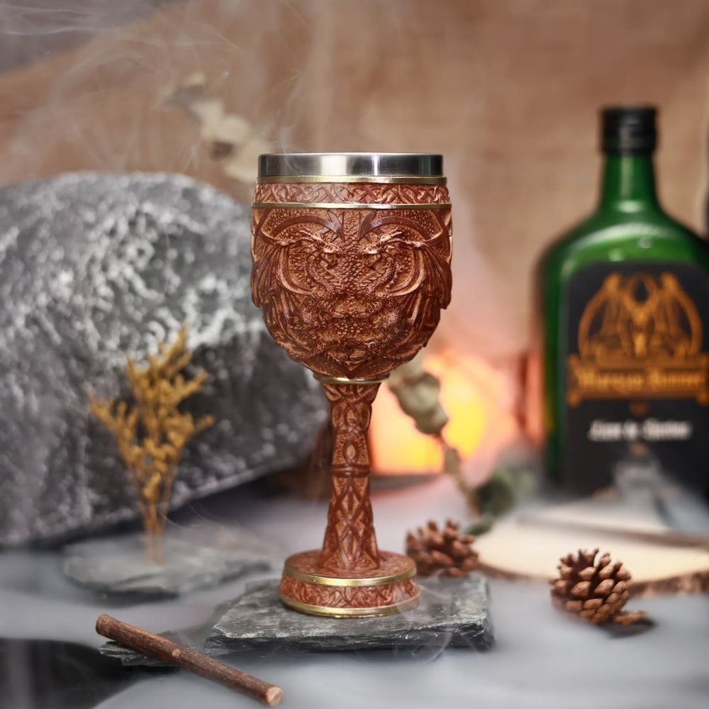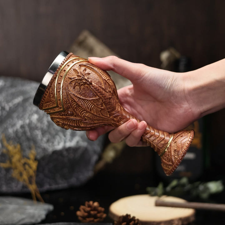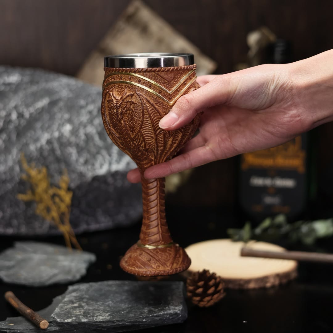 Discover ancient enchantment with our Drinking Cup Collection! Crafted from top-notch resin and lined with food-grade stainless steel, our mugs/goblet echoes the artistry of legendary Northland blacksmiths. It's more than just a mug - it's a piece of Norse mythology. Perfect for all beverages and an impressive décor item, it's a must-have for Viking and fantasy enthusiasts.