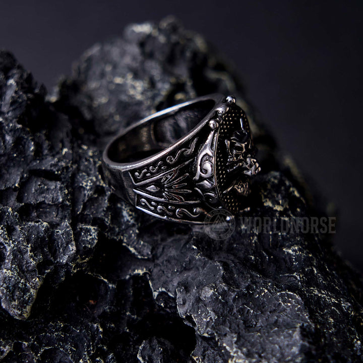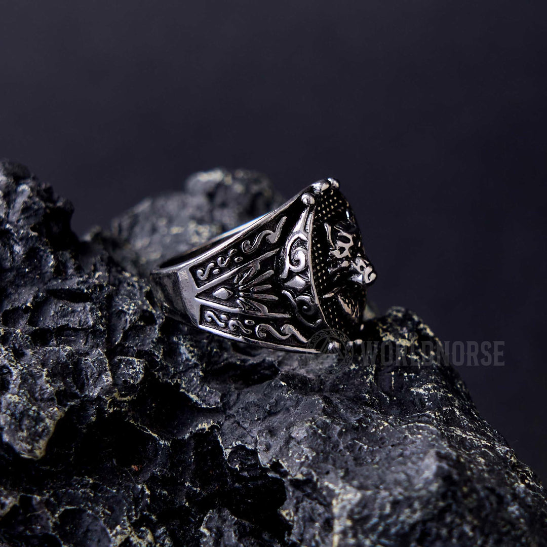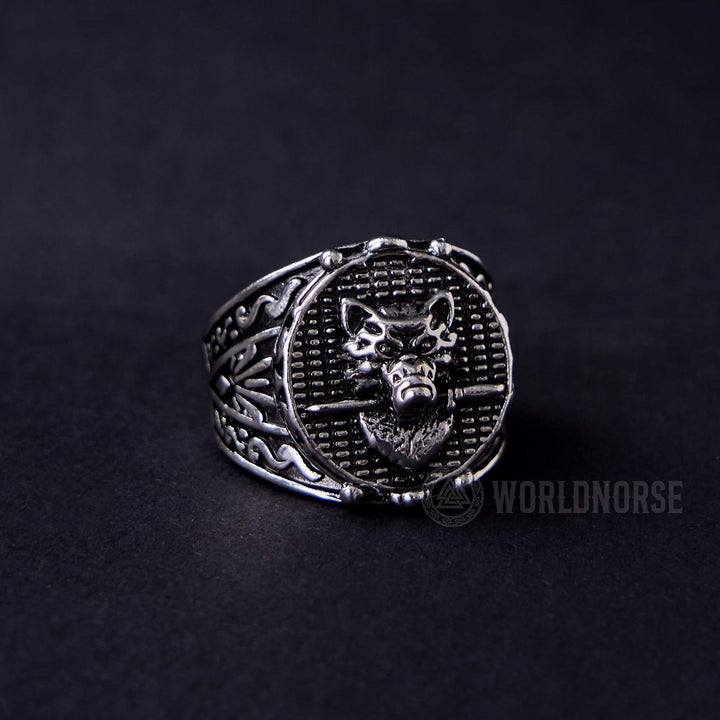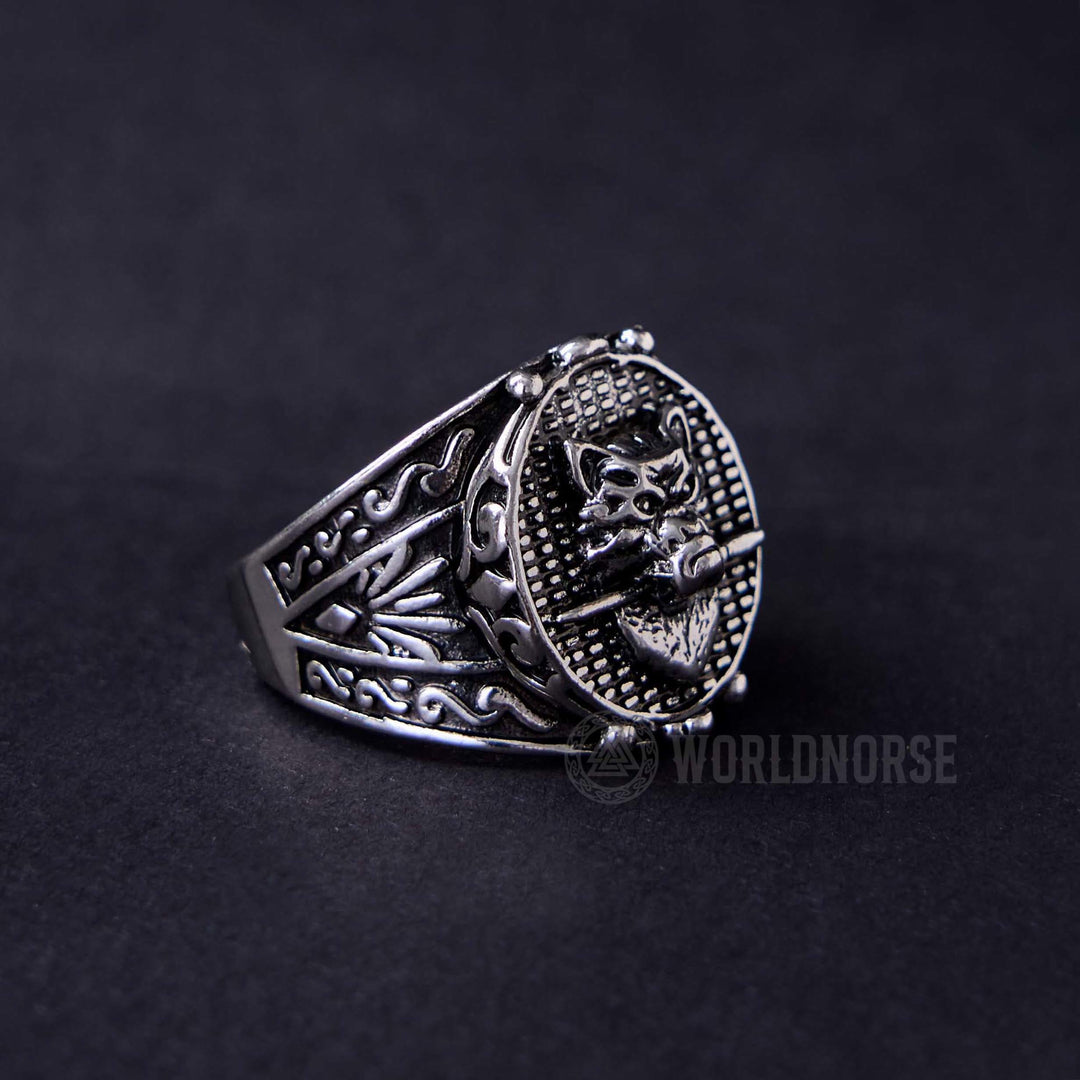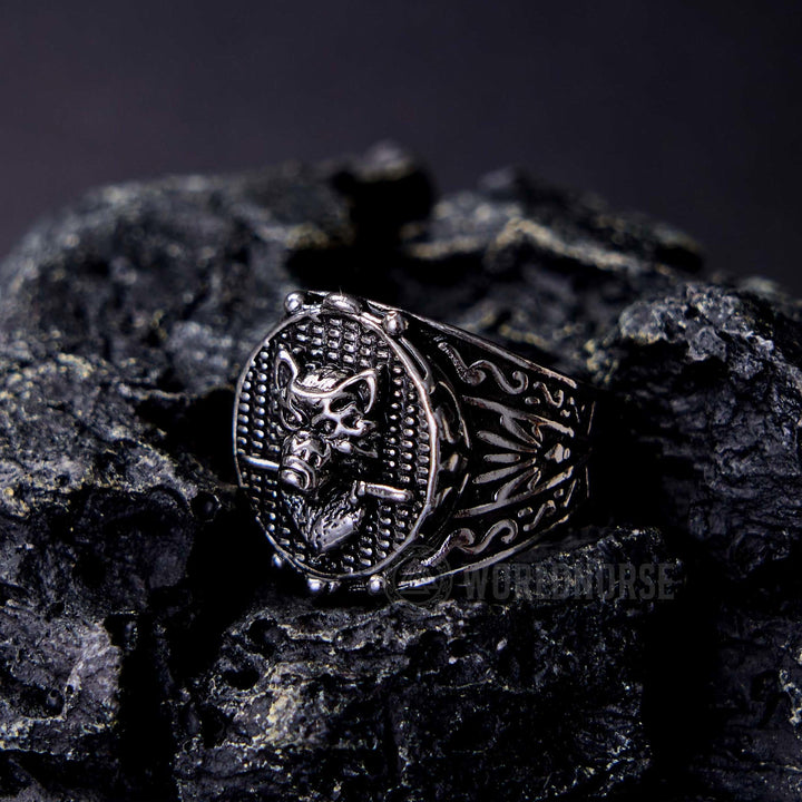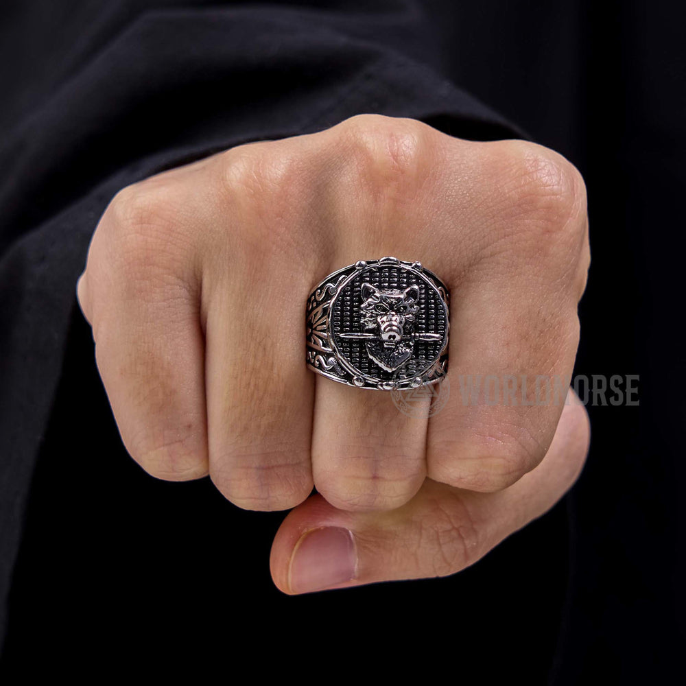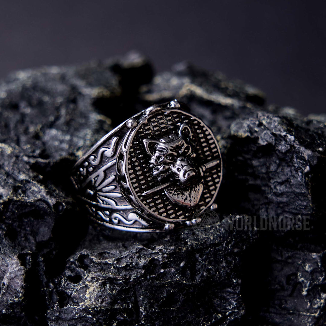 WorldNorse Wolf Head Biting Sword Ring