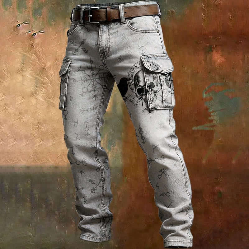 WorldNorse Viking Raven Skull Cargo Pants - White - US/UK/AU50,EU60 (5XL) - image 0