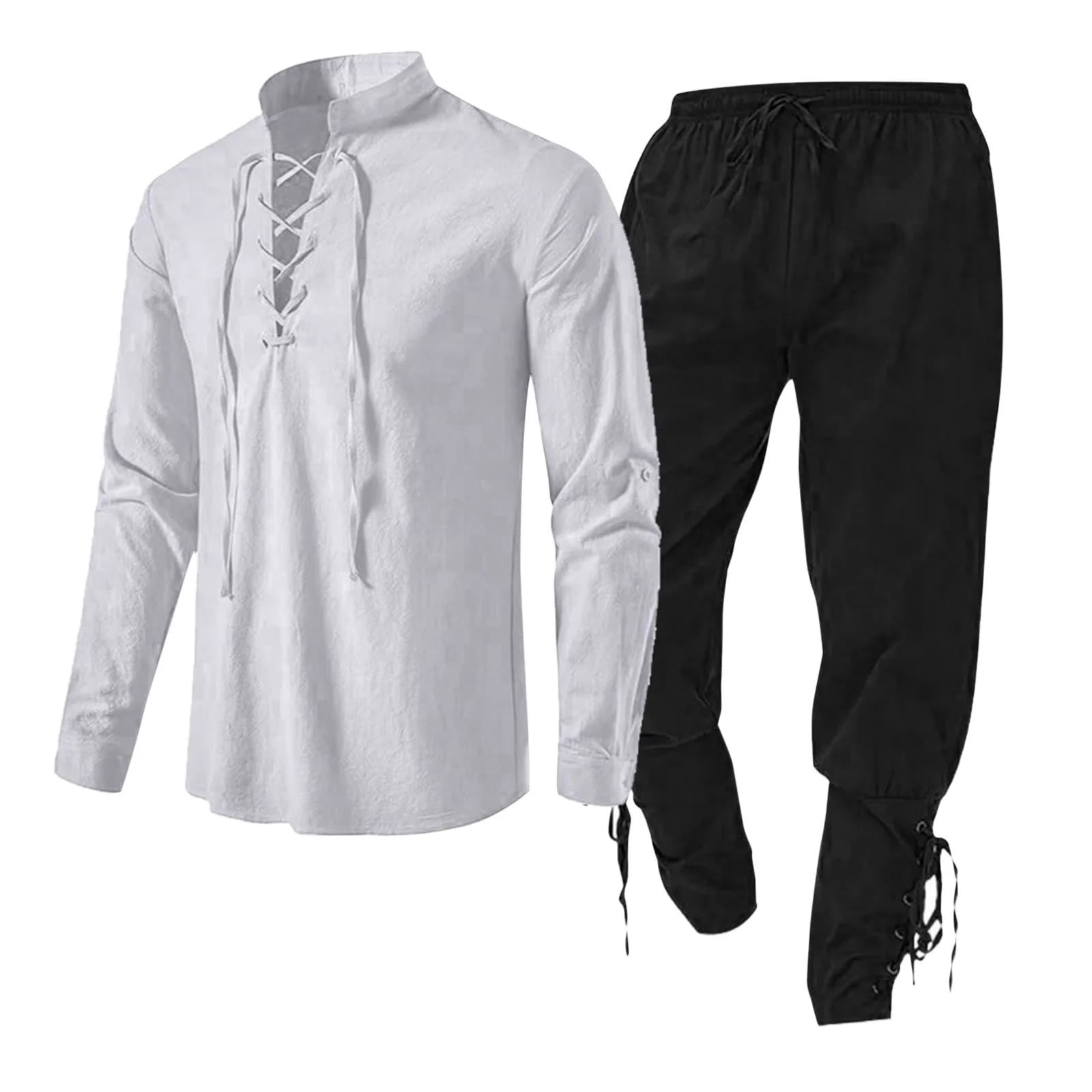 - Shirt Neckline: Lace-Up Band Collar