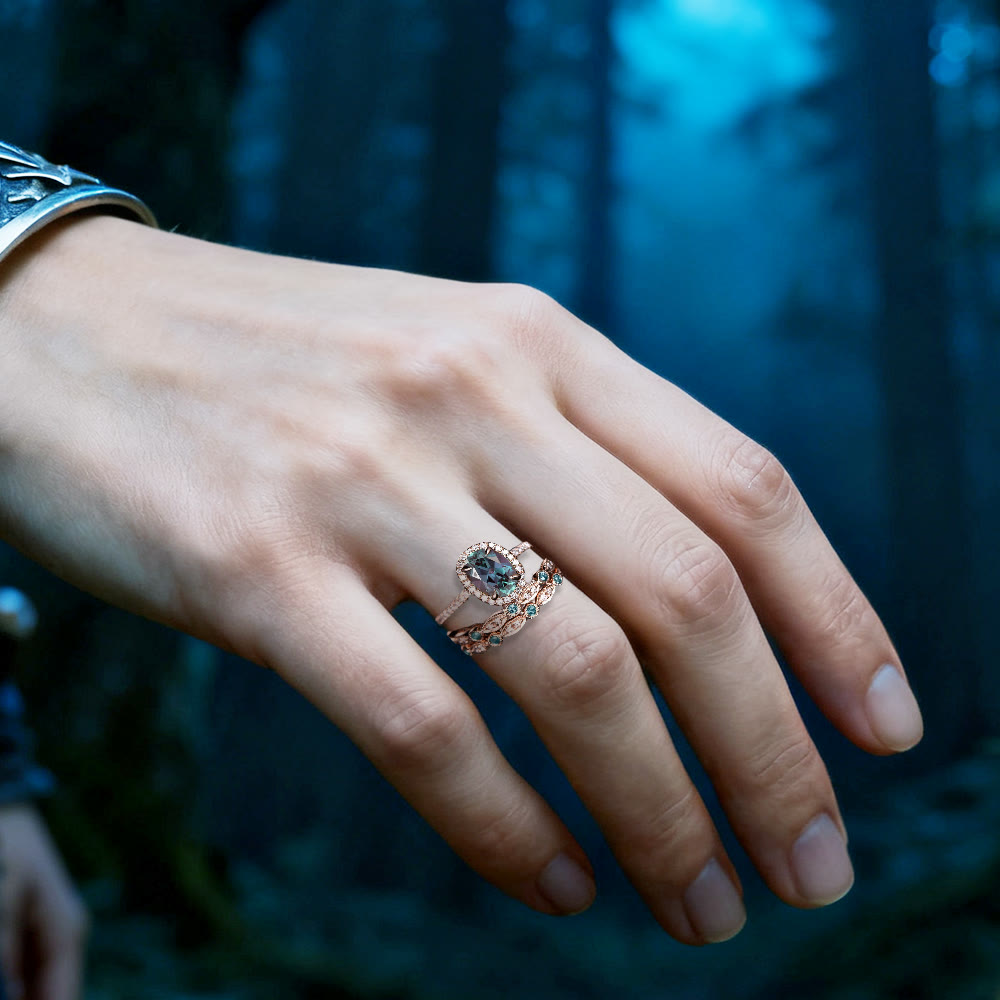 The Lucky Alexandrite & Emerald 3-piece Ring is a radiant symbol of fortune and eternal love. Alexandrite, known as the stone of luck and transformation, shifts its colors with light, reminding its wearer of life's endless possibilities. Paired with the protective and heart-centered energy of emeralds, this three-piece set becomes more than jewelry—it is a talisman of joy, love, and new beginnings.